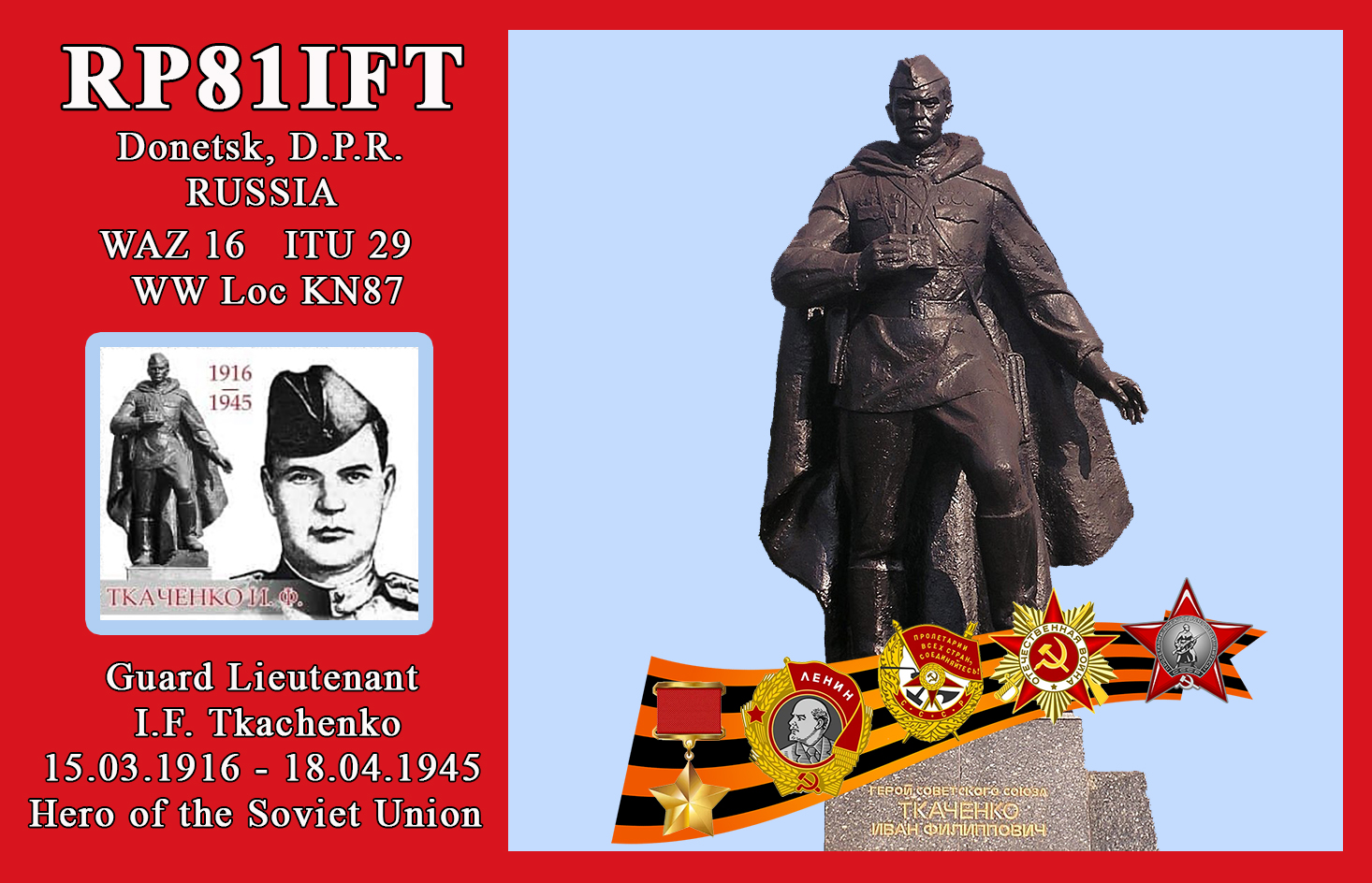 Донецкое местное отделение регионального отделения общероссийской общественной организации радиоспорта «Союз радиолюбителей России» при поддержке Регионального отделения СРР и ДОСААФ России ДНР , готовится к проведению мемориала Победа-81. За довольно короткий период со дня основания коллективной радиостанции RM6OS, в помещении ДОСААФ России ДНР, силами и финансовой поддержки радиолюбителей сделан ремонт, оборудованы три операторских места, ведется работа по сборке и установке антенно-фидерных устройств. Совет МО СРР по ДНР принял решение провести Мемориал Победа-81 специальным позывным RP81IFT Иван Федорович Ткаченко Герой СССР. Разработана QSL карточка.